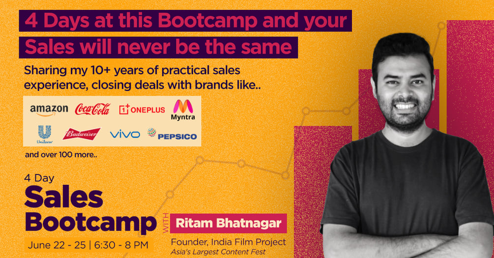 How did I do that? I put all my energy as a founder in doing sales - 10 hours a day, 365 days a year. I was taught about Sales in my MBA and guess what? None of it helped me when I was building my startup. I learnt it all my way with failed deals, over-commitments gone wrong, win-lose negotiations, communicating poorly and inefficient sales process in my early days as well as reading tens of books, watching tons of videos and trying hundreds of tools - that helped me build my own processes which I'll be sharing in the bootcamp.